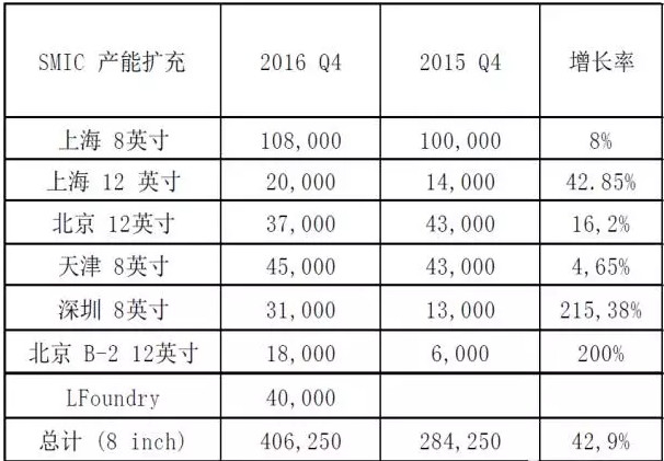 今年的产能扩充看来不能如法炮制,因为“人算不如天算”。虽然中芯国际计划由2016年第4季单季总产能约40.8万片(8英寸计),预估到2017年第4季8英寸厂单季产能将成长至25万片,增长11.6%,及12英寸厂产能增至10.5万片,增长40%,合计产能年增约20%。