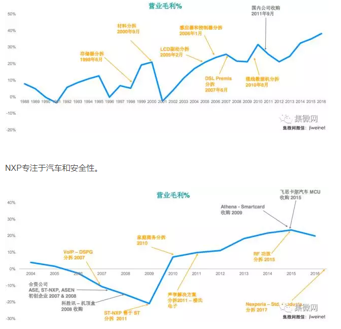 德州仪器多年来通过不断分拆和收购,专注在模拟领域,营业利润不断上升。