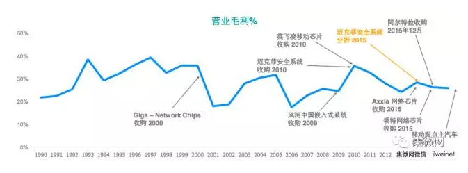 纵观半导体行业的整个发展历史,从1972年至2016年,全球第一的半导体公司的市场份额始终维持在一个相对稳定的区间内。各家公司为了扩大市场份额绞尽脑汁,收购是最为普遍的选择,然而前五强公司中,只有一家通过收购增加了市场份额。