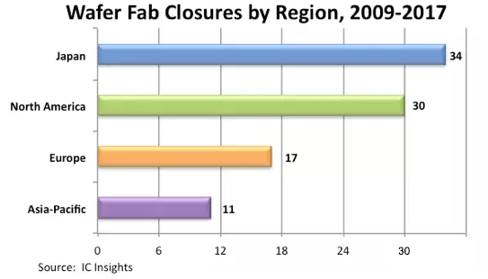 IC Insights:2009~2017年全球共92座IC晶圆厂关闭或改变用途