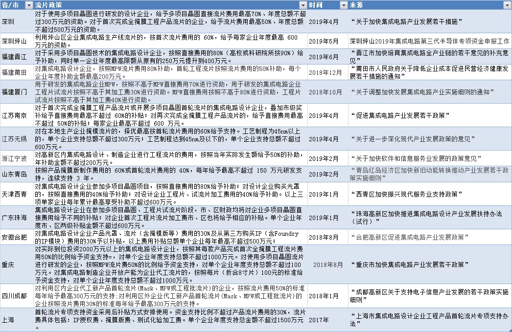 因此,“流片补贴”也成为我国集成电路相关政策中重要的补贴项目。