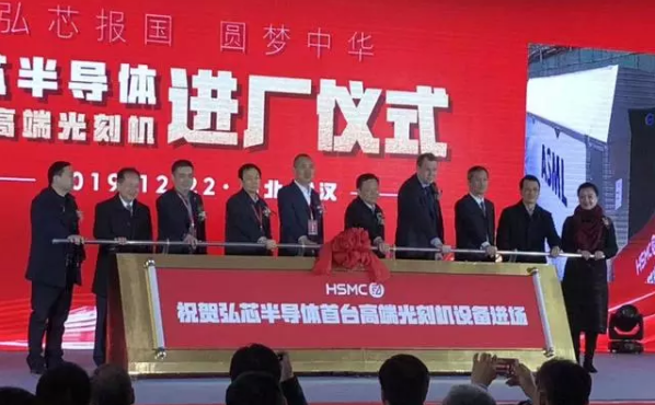 武汉弘芯半导体发布公告,12月22日,该厂为首台高端光刻机设备进厂举行了隆重的进厂仪式。虽然官方没有公布具体信息,但根据现场图片可以确定,制造商为ASML。