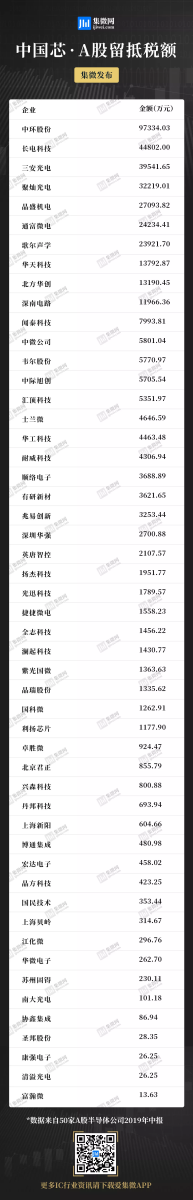 为进一步统计留抵税影响,集微网整理了A股上市半导体公司的留抵税情况,根据2019年中报数据,50家A股半导体公司的留抵税高达40亿元。除上市公司之外,目前十多家非上市公司也向集微网反馈留抵税问题,金额接近5亿元。