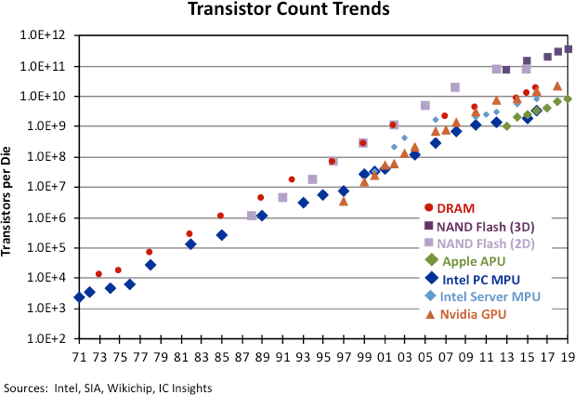 IC Insights:晶体管数量增长趋势继续遵循摩尔定律