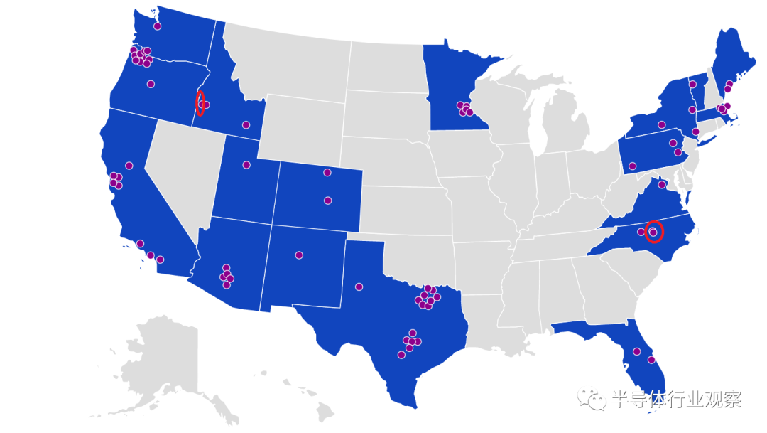 现在美国本土晶圆厂的分布情况,红色圈注为新建晶圆厂(图源:SIA)