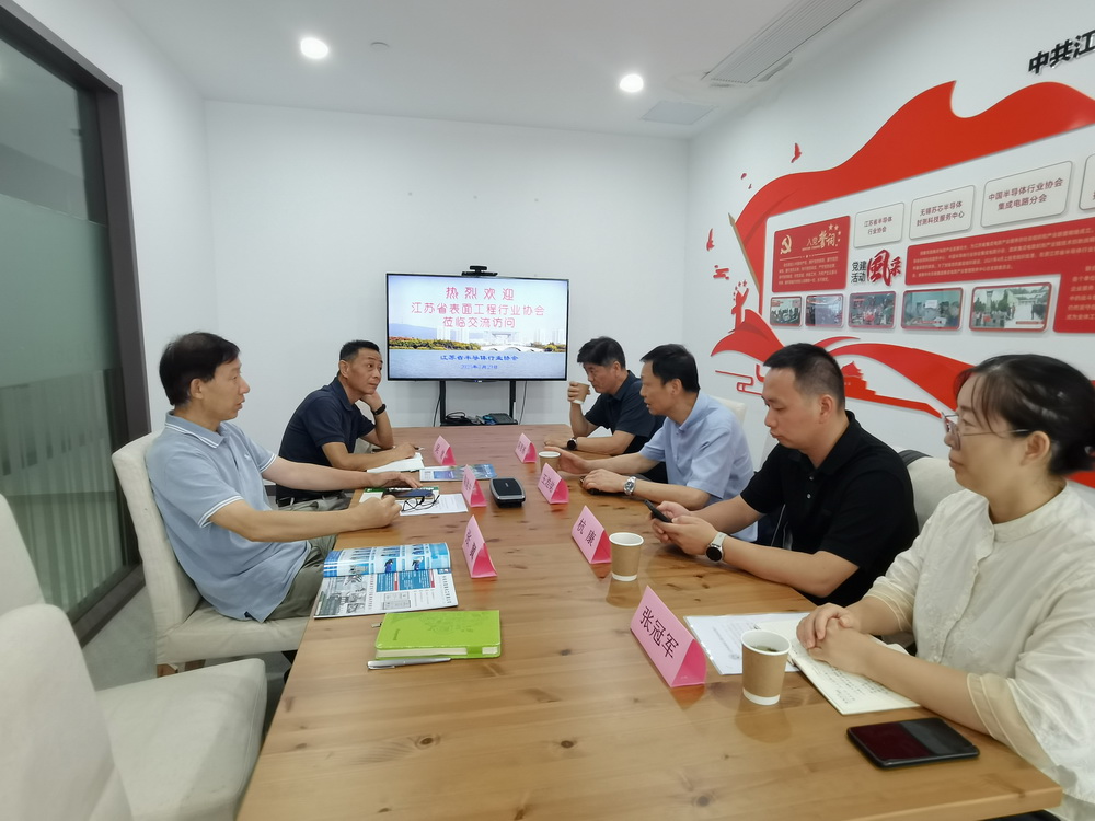 7月29日,江苏省表面工程行业协会副会长兼秘书长王浩铭率队一行4人到访江苏省半导体行业协会秘书处,开展工作交流。省半协副秘书长陶建中热情接待了来访客人。此次省表协到访团队成员包括:副会长兼秘书长王浩铭,副会长杭康,技术委员会主任、常州大学教授陈智栋,副秘书长张冠军。