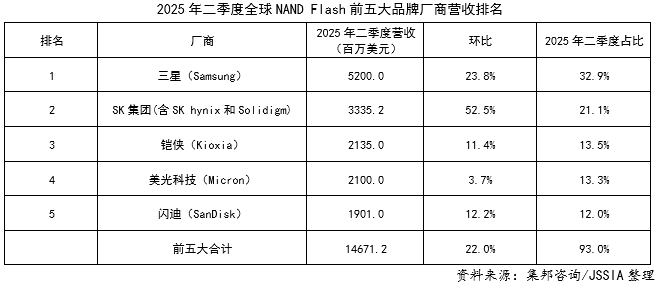 2025年二季度全球NAND Flash厂商营收情况